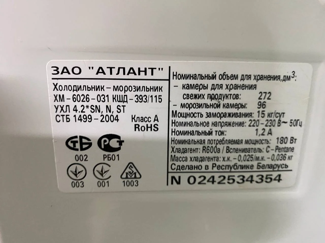 Холодильник Atlant Размеры (Ш/Г/В) 60x60x205 см цена 12500₽ Артикул 4997